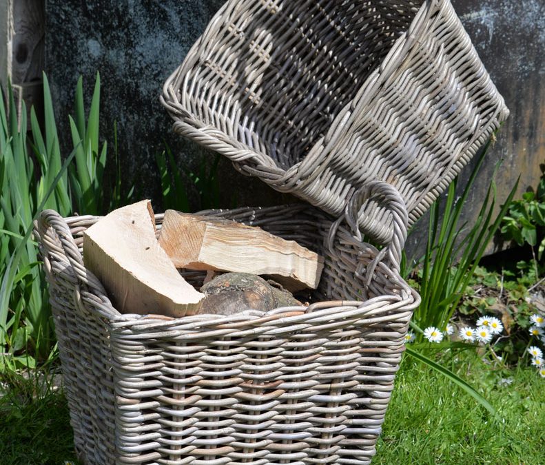 10/6936 Set of 2 Square Grey Log Baskets Display