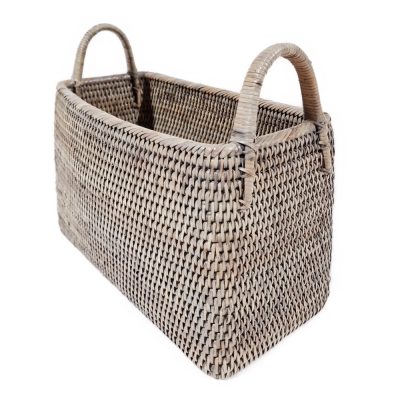 Oblong Grey Kubu Rattan Log/Kindling Basket